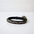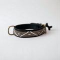 Smukke håndlavede og robuste hundehalsbånd fra Kenya, der er noget ud over det sædvanlige. Alle perler er enkeltvis syet på i hånden. Ydersiden er af vegetabilsk garvet kolæder og indersiden er af vegetabilsk garvet gedelæder. Messingdetaljer er håndlavet af genbrugsmaterialer. Læderet er sort og forholdvis kraftigt, hvilket får halsbåndet til at syne store i størrelsen.